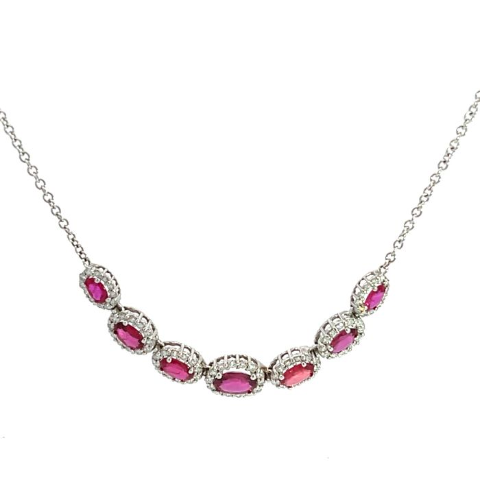 14K White Gold Necklace with 1.00 ctw Diamonds and 3.63ctw Rubies