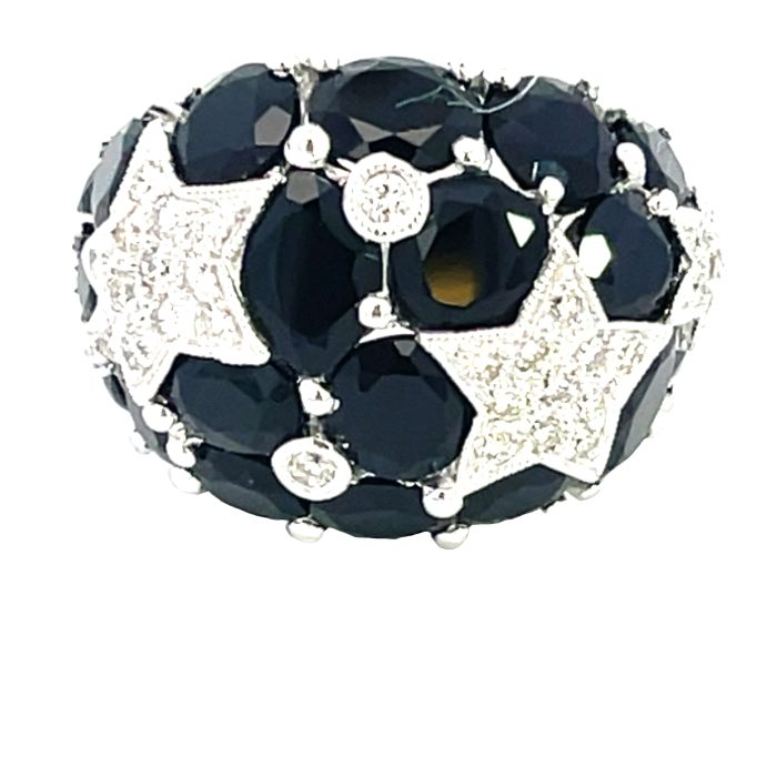 18K White Gold 0.51ctw Diamond Onyx Star RingProduct Family: Rings Metal Type: 18K White Gold Color: GH Clarity: SI2 Gram Weight: 12.6 Diamond Total Weight: 0.51 Gem Stone Type: Onyx Gem Stone Weight: 4 Gender: Women's