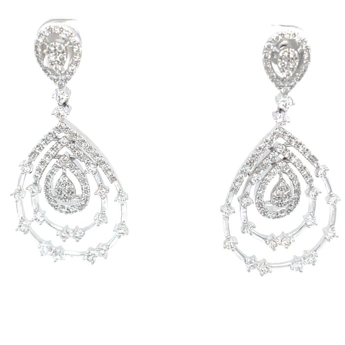 18K White Gold Diamond Dangling Earrings with 2.16ctw DiamondsProduct Family: Earrings Metal Type: 18K White Gold Color: GH Clarity: SI1 Gram Weight: 14.17 Diamond Total Weight: 2.16 Gender: Women's