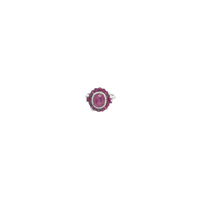 18K White Gold Ring with 0.62ctw Diamonds and 3.09ctw Rubies
