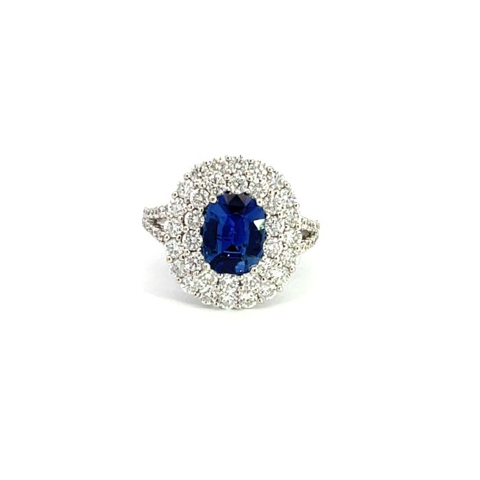 18K White Gold Ring with 1.63ctw Diamonds and 1.75ctw SapphiresProduct Family: Rings Metal Type: 18K White Gold Color: GH Clarity: SI Gram Weight: 5.4 Diamond Total Weight: 1.63 Gem Stone Type: Sapphire Gem Stone Weight: 1.75 Gender: Women's